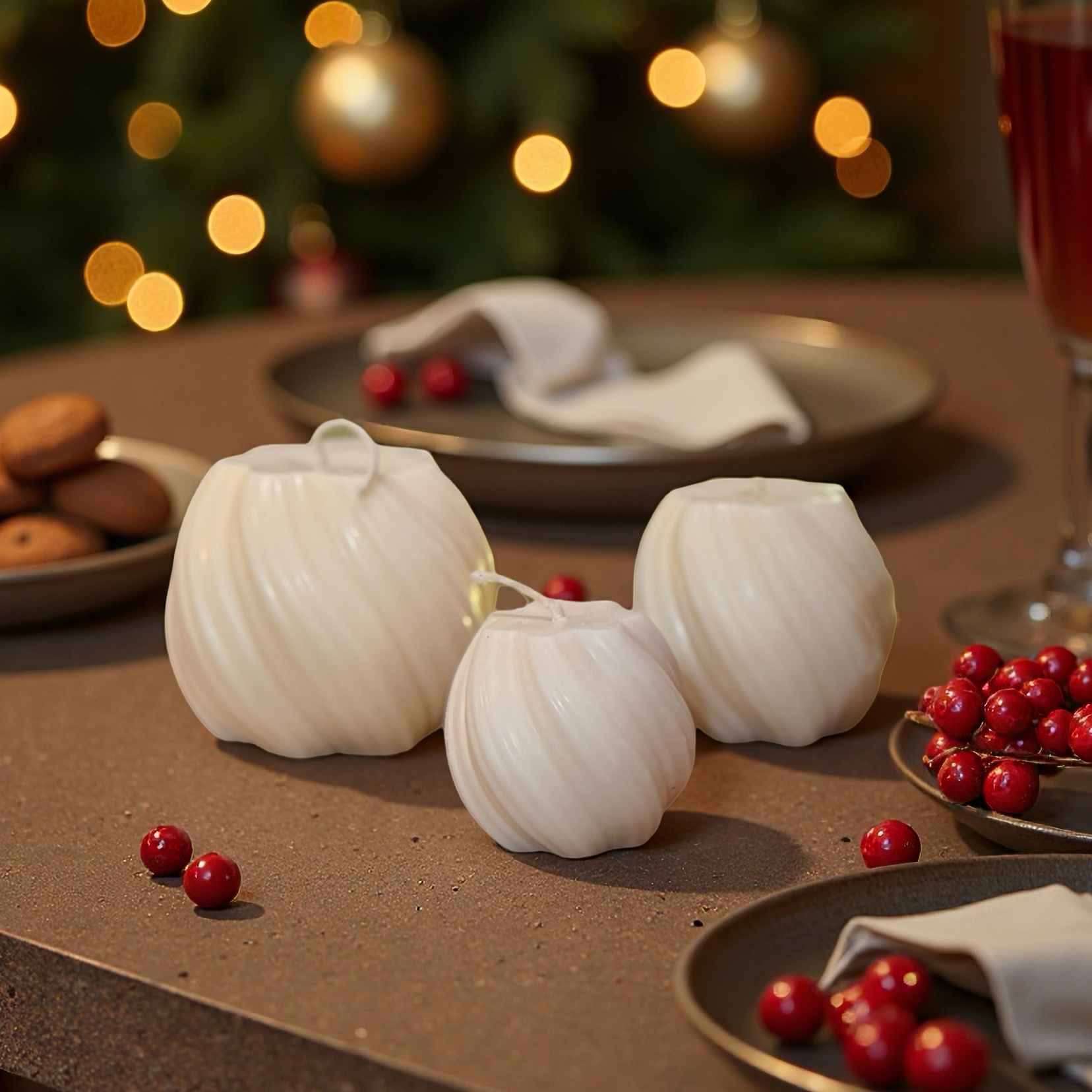 Ce trio de Bougies Douce Torsion apporte douceur et dynamisme à votre décor de Noël. Leurs formes arrondies et torsadées, coulées à la main en cire végétale, offrent un jeu de lumière subtil lorsqu'elles sont allumées.